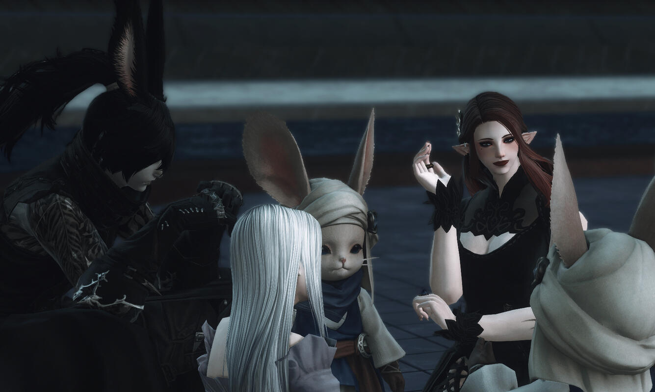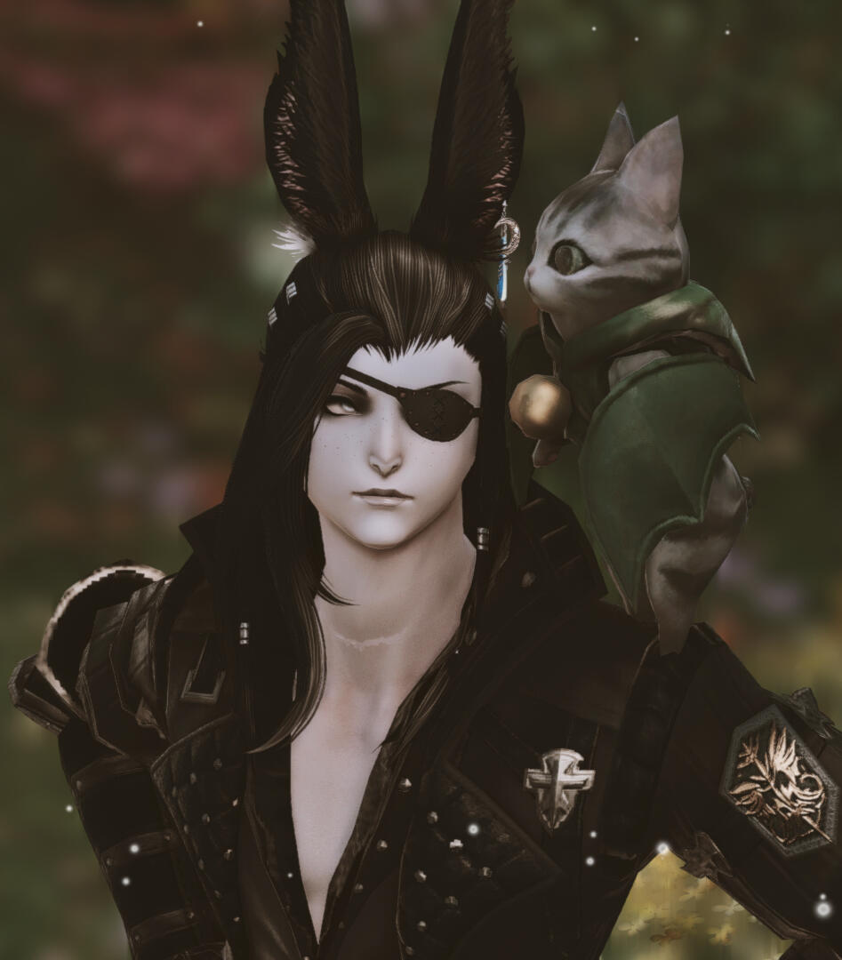 Prior to the incident in Coerthas, orphaned Enok and his twin were around the age of five when they were found in the Chocobo Forest. Raised on the Delgadio Chocobo Ranch, a quaint farmstead of several houses and communal tents in the Chocobo Forests outside of Tailfeather that ran by Auront Delgadio and his wife Thalia Epocan also lived. Adopted by Thalia, who began an orphanage after returning from her homeland of Thavnair wedded to Auront, with her children of three male and three female miqo'te. Of what was found at the time, the only thing they would tell the twins was that their parents were possible refugees of Dalmasca, merchants that were discovered dead on the road enroute to Ishgard, yet no valuables or gil was taken. That it was likely an execution rather than simple murder.Life on the Ranch itself was simple, breeding, training and the raising of chocobos. Protecting the wildlife and following the Tailfeather Hunter's Code when necessary. For the chocobos the Ranch raised, these were sold exclusively to House Jienuex and solidified relations between the clan and Ishgardian Lower Noble House. Enok, despite being a Viera among Miqo'te, was successful in bartering, trade, and tending to the chocobos they raised.Among a few of his hobbies, Enok dabbled in the Epocan family secrets of magic and trained with the hunters of Tailfeather alongside his twin and adopted family to ensure the safety of the Ranch as well as uphold the Hunter's Code.